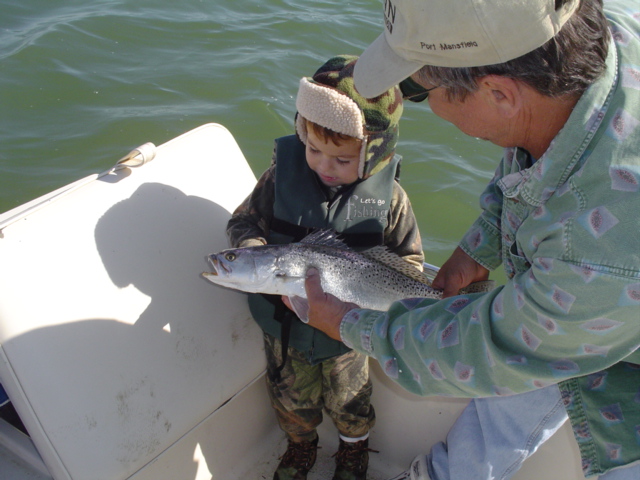 This was the first speckled trout caught by Edward Mahan. The fish was caught in Aransas Bay on January 8, 2004.