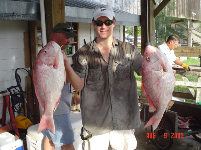 Chad Lee with two nice red snapper caught offshore of Port Mansfield, Texas. Chad is Jon Mahan's brother-in-law.