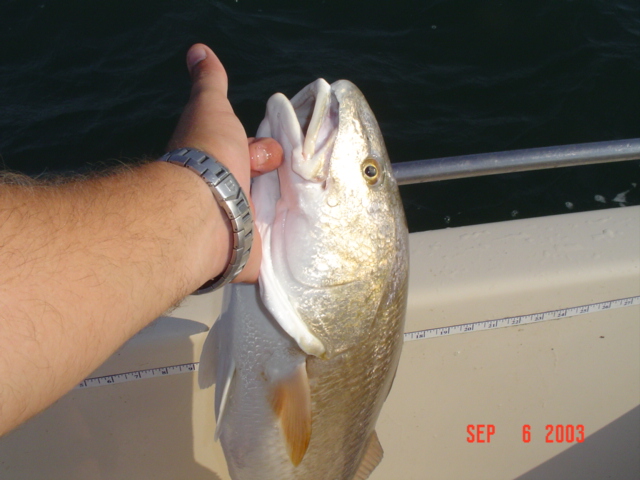 Jon Mahan takes a picture of an oversized redfish just before releasing her.